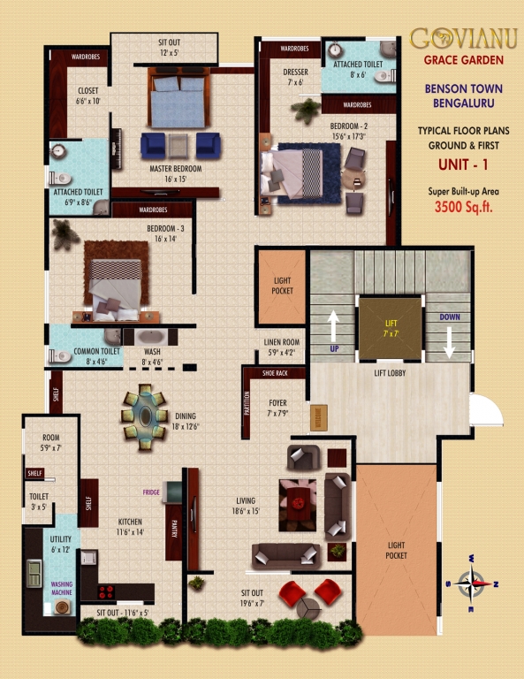 - Super Built-up Area: 3500 Sq. ft (Unit – 1) and 3500 Sq. ft (Unit – 2)